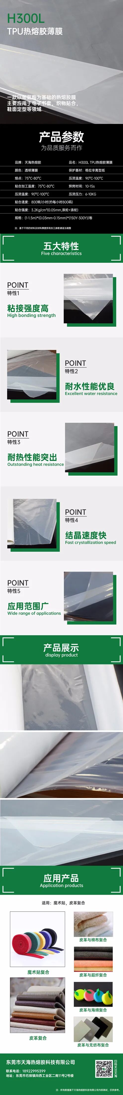 专注于环保聚氨酯热熔胶的研发和生产,多项技术已经申报国家专利,天海胶膜全部选用优质进口原料,品质可靠、性能稳定、价格合理,广泛应用于制鞋,电子,包装、服装等领域,尤其在制鞋和电子书套行业中的应用已处于国内领先和领导地位。